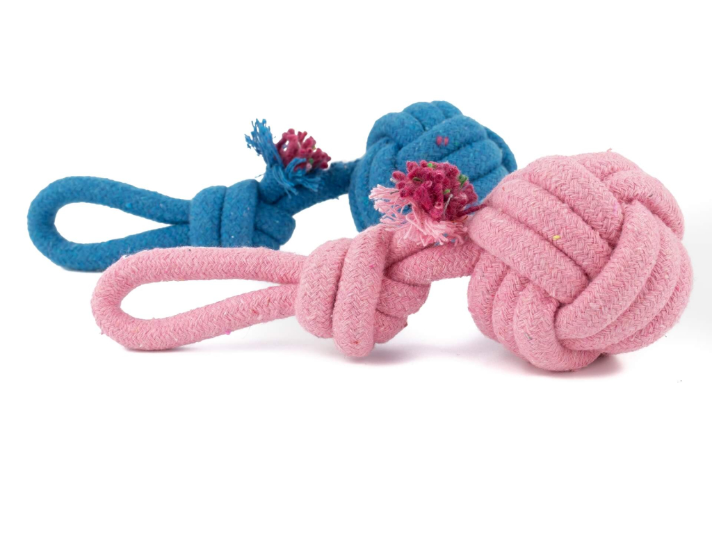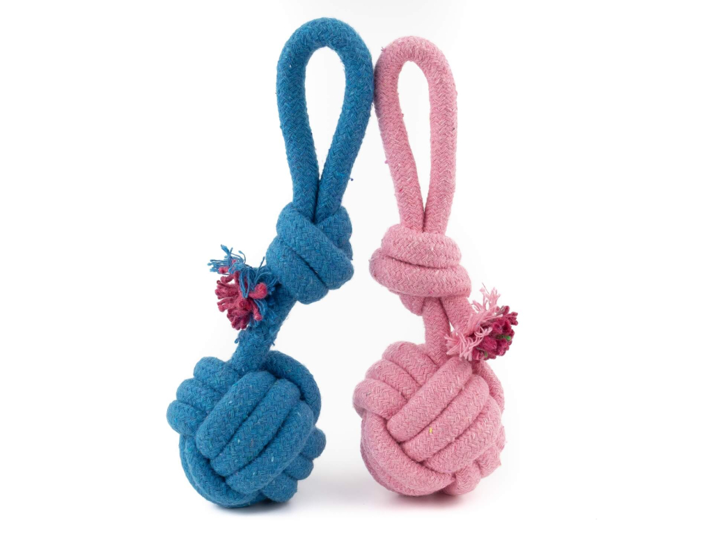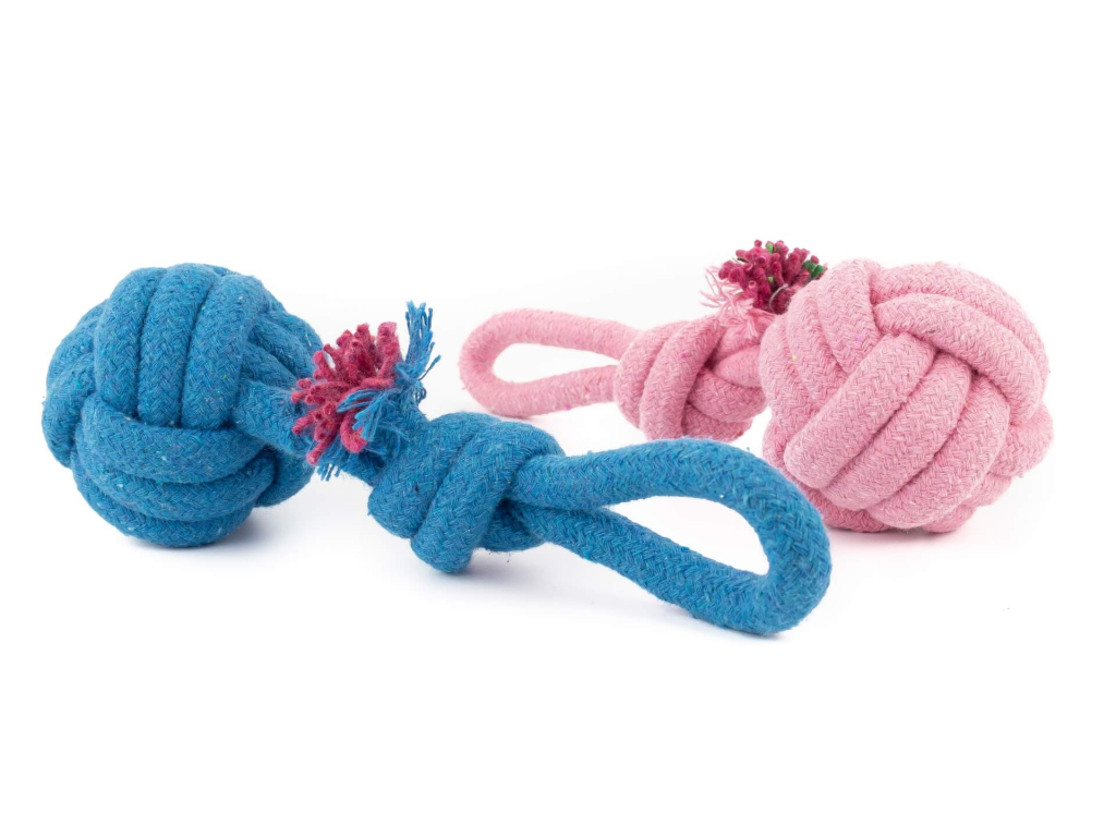 Beo smyčka s uzlem pro psy malé a střední velikosti. Ideální na oblíbené přetahování i samostatné psí dovádění. Vyrobená z bavlny a plasty.