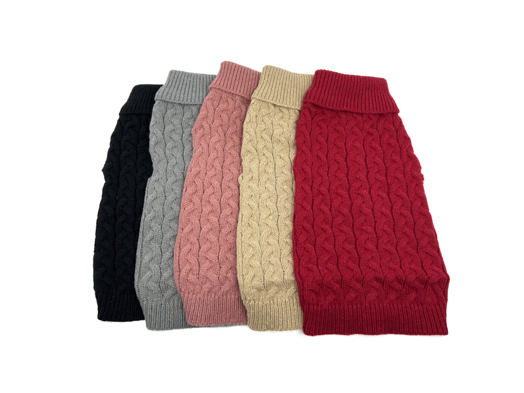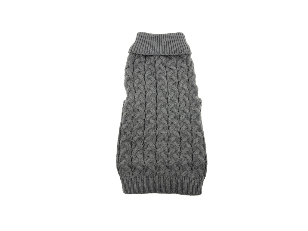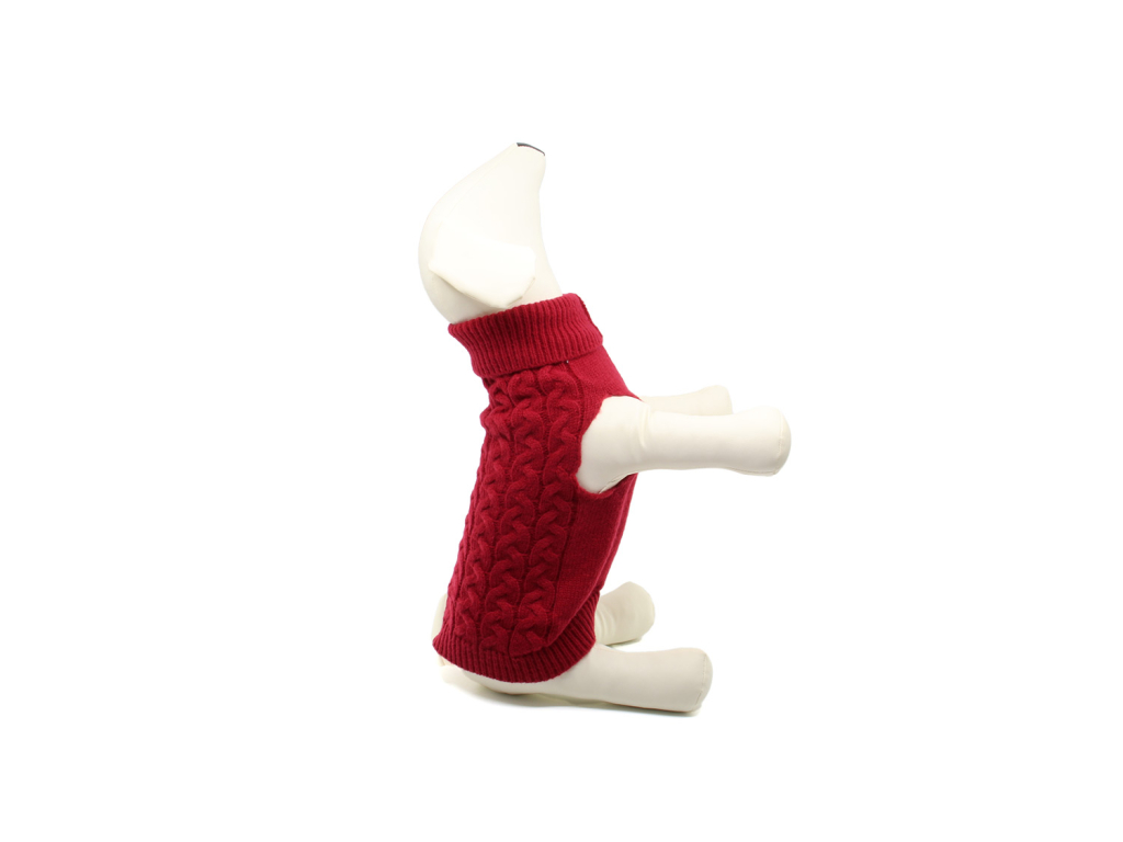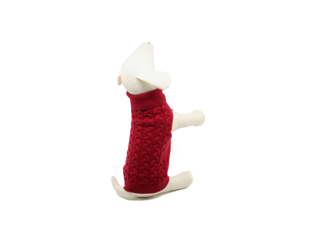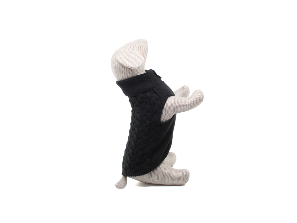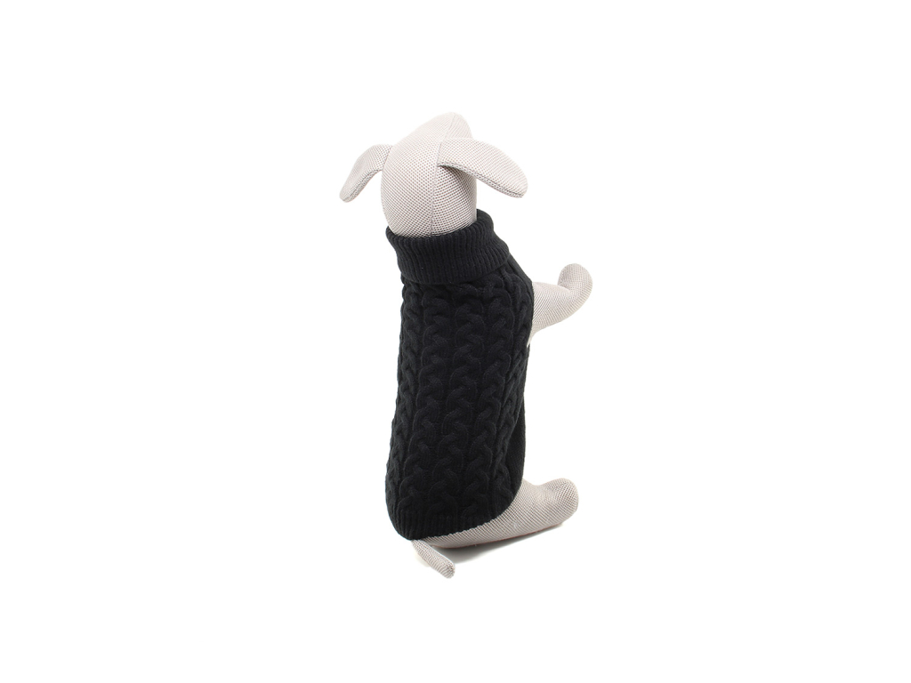 Arno elastický svetr pro psa – měkký pletený svetr s vysokým rolákem a copánkovým vzorem. Díky pružnému úpletu skvěle sedí, hřeje a neomezuje v pohybu.