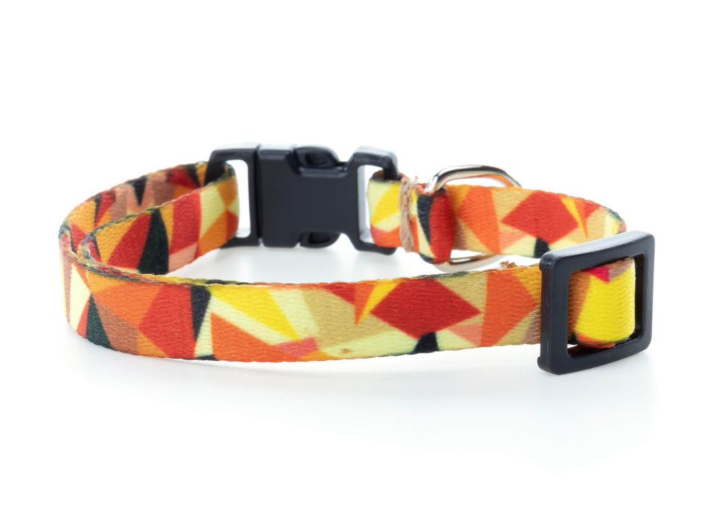 Obojek je ušitý z kvalitního nylonu a ozdoben retro potiskem. Vhodný pro malá a střední psí plemena.