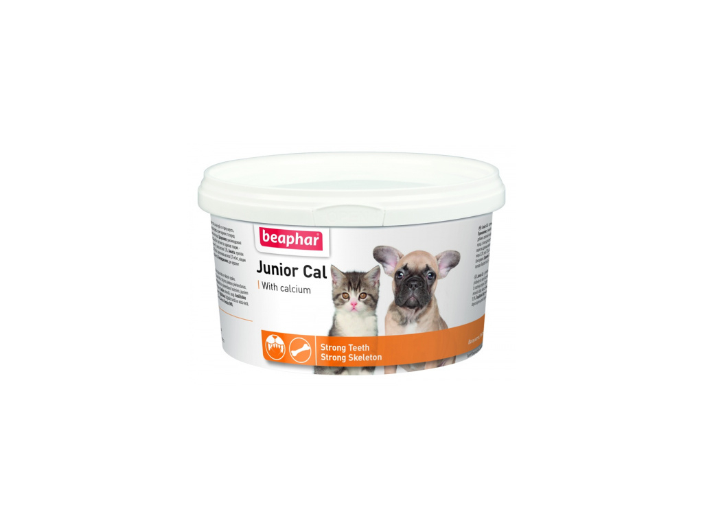 Beaphar Junior Cal podporuje slabé klouby a má pozitivní vliv na imunitu a její posílení. Produkt se skládá ze směsi minerálů zajišťujících silné kosti, zdravou srst a rovněž je vhodný na citlivé zuby a kůži především štěňat a koťat. Lze využít při odchovu mláďat a jako podpůrný prostředek pro březí a kojící samice. Uchovávejte při pokojové teplotě v suchu na tmavém místě, mimo dosah dětí.