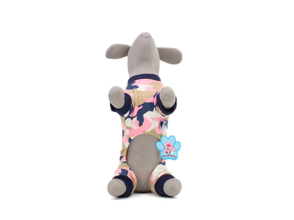 - Elastický materiál: Kombinéza se přizpůsobí tělu psa a poskytne pohodlí bez omezení pohybu.