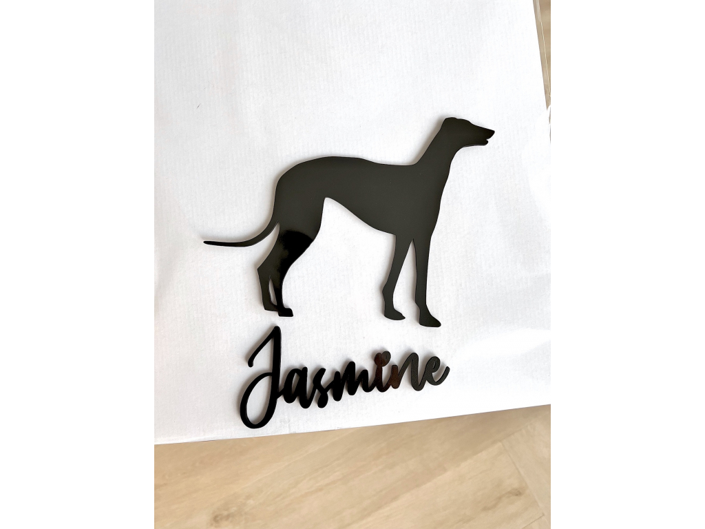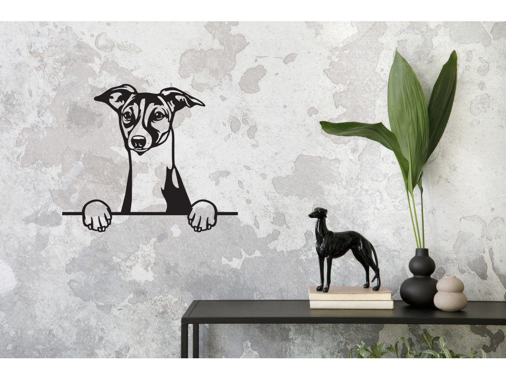 Dodejte svému interiéru nádech útulnosti. Dekorace na zeď vyobrazuje elegantní a bystrý kukuč anglického chrta. Ideální také jako dárek pro milovníky pejsků.