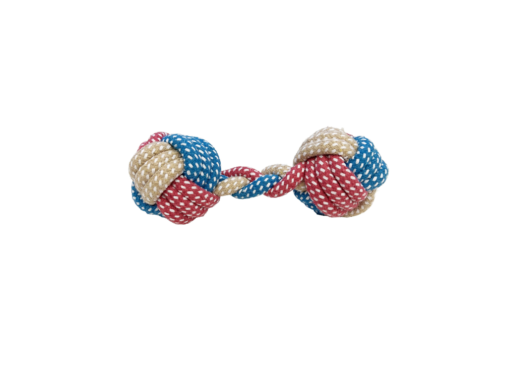 Se zapletenou činkou se můžete pustit do různých druhů her. Odolná hračka pro psy zvládne Vašeho pejska zaměstnat i samotného, spolu si procvičíte aportování nebo přetahování. Do míčků zapletené uzly na obou koncích činky psy přímo vyzývají k okusování, při čemž si skvěle vyčistí zuby. Pestrobarevnou činku pro psy uvidíte i z velké dálky.