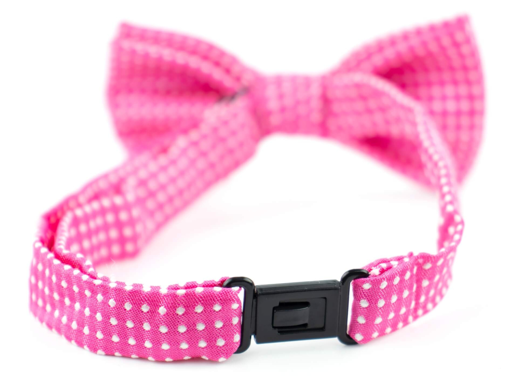 Potěšte svou psí kamarádku elegantním módním doplňkem ve tvaru motýlku v růžové barvě s jemnými bílými puntíky.