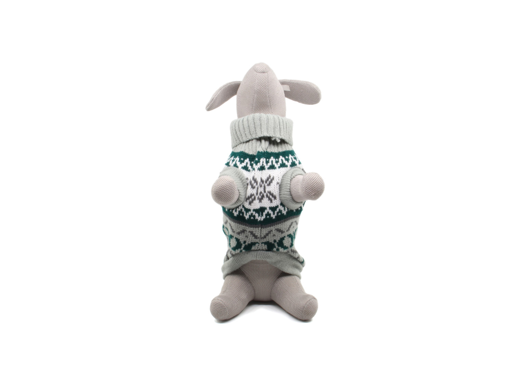 Slušivý salva černošedý svetr pro psa s norským vzorem. Vyroben z elastického polyesteru. Velikostně vhodný pro malá a střední plemena.