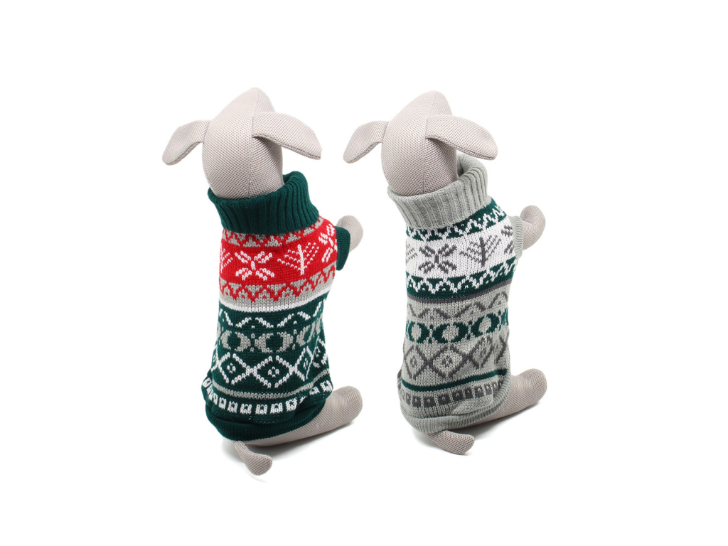 Roztomilý teplý svetr se zimním vzorem. Ušitý z elastického polyesteru. Určený malým a středně velkým plemenům.