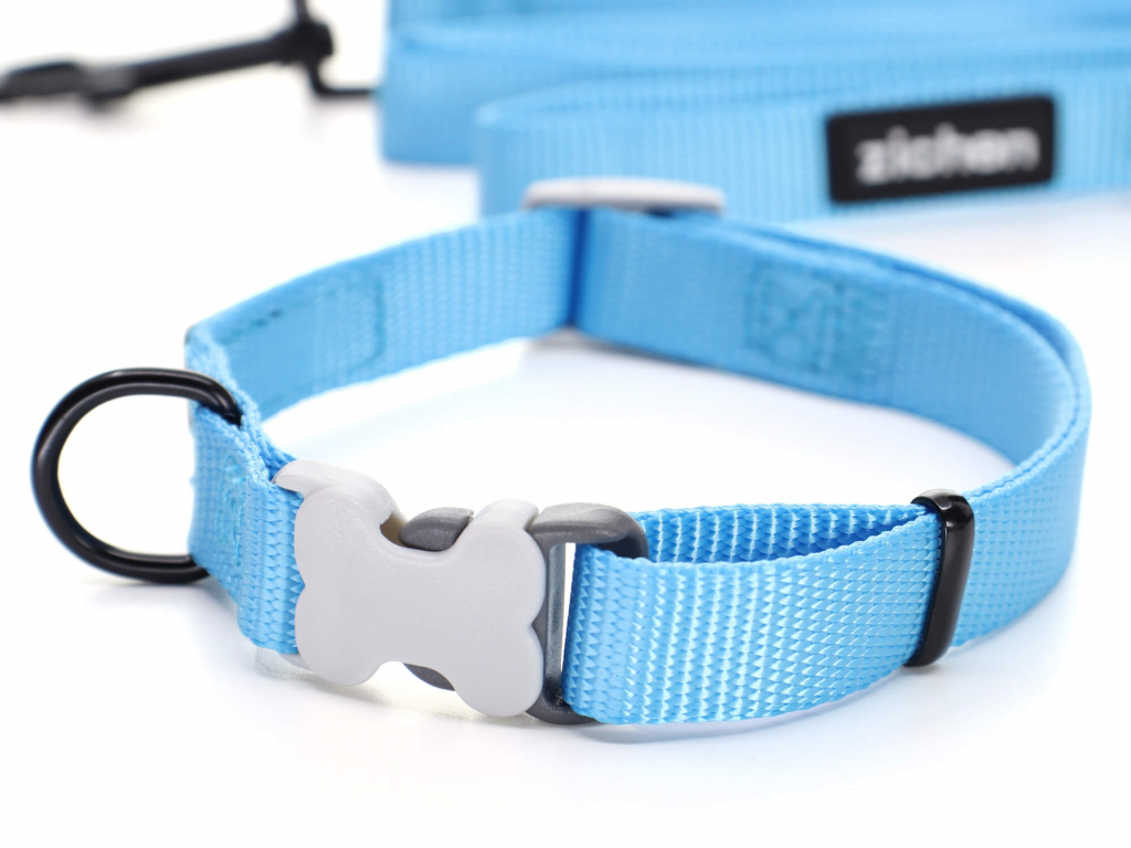 Set modrého obojku s vodítkem vyniká svou odolností a pevností, díky nylonovému materiálu ze kterého je vyroben. Set obojku i vodítka v jedné barvě a stylu se stává ideální volbou pro pánečka řešícího i estetickou stránku svého pejska. Navíc je vodítko i obojek vyřešen při jednom nákupu. K dostání v různých velikostech pro malá, střední i velká psí plemena.