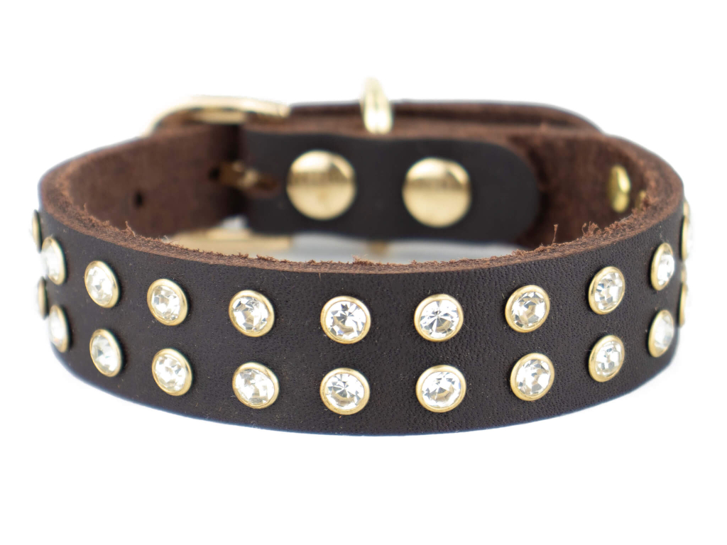 Kožený obojek je nezbytným módním doplňkem pro každého správného psího manekýna. Kožený obojek s kamínky je praktický a elegantní zároveň.