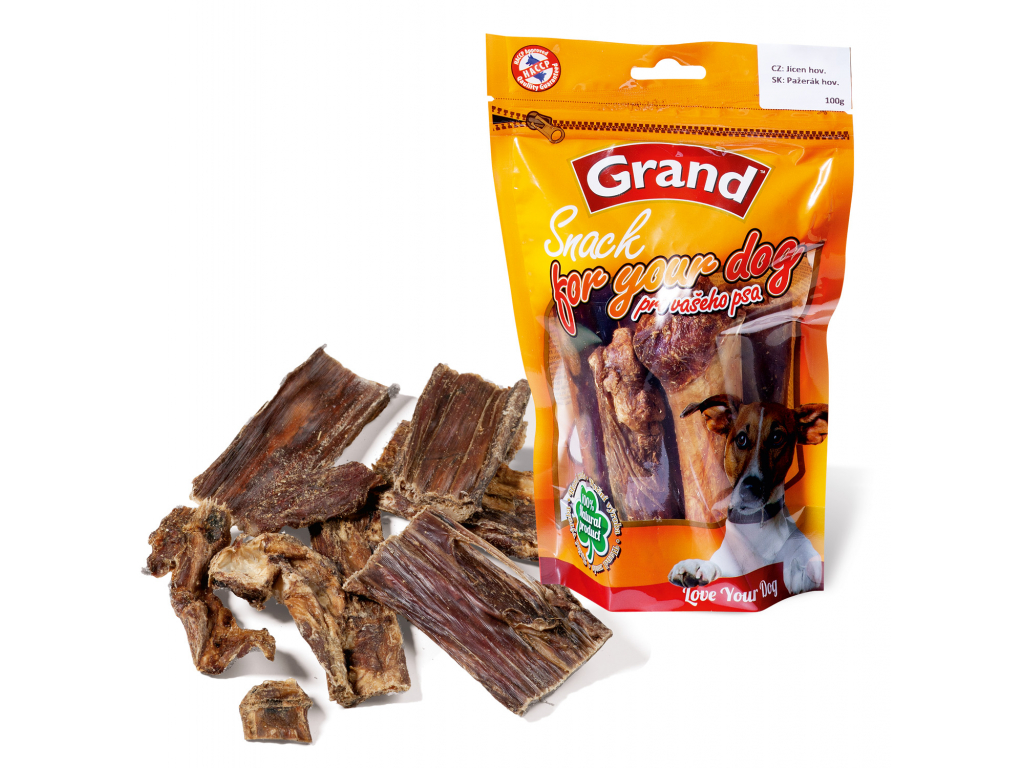 Grand sušený jícen pro psa je kvalitní pochoutka pro Vašeho mazlíčka! Poslouží jako doplňkové krmivo nebo odměňující pamlsek, navíc posiluje žvýkací svaly a čistí chrup pejska. Sušený jícen je balený v zipovém sáčku, který umožňuje vícenásobné otevření a zavření. Určený pro malá a střední psí plemena.
