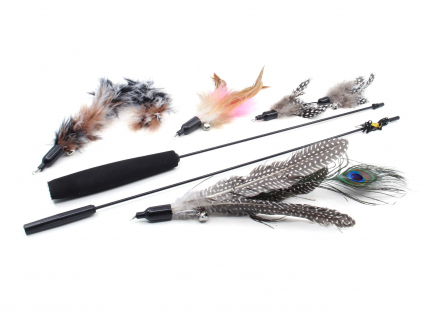 Vytahovatelná udice pro kočku se sadou 5 různých závěsných pírek s rolničkou. Nabudí kočku ke společnému dovádění a rozšíří dovednosti pravého lovce.