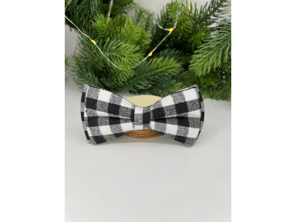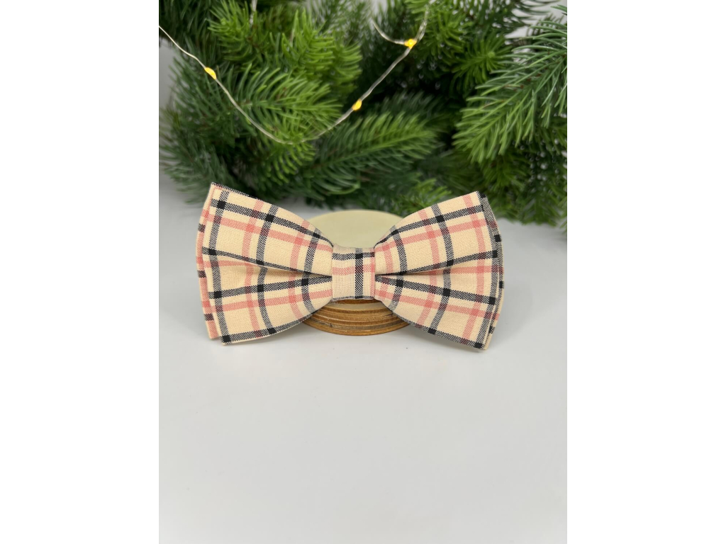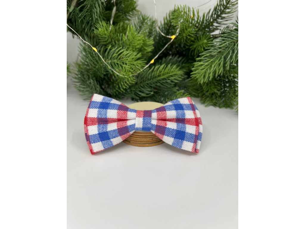 Nezbytný módní doplněk ve formě károvaného motýlku pro psa. Vyroben z bavlny. Připnut k obojku opatřeném přezkou k připnutí vodítka.