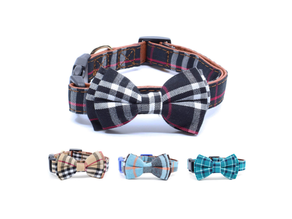 Pokud se chystáte na oslavu či večírek, nebo chcete jen se svým psem vypadat během procházky stylově, můžete pejskovi nasadit obojek s motýlkem. Funguje na stejném principu jako ten klasický, jen je doplněn o ozdobu v podobě motýlku. Kovové očko slouží k připnutí vodítka. Jednoduché a rychlé zapínání na přezku potěší nenáročné majitele. Velikostně lze vybírat z více velikostí dle obvodu krku. Psí obojky s károvaným vzorem jsou nabízeny ve více barevných variantách.