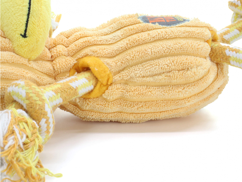 Hračka pro psa je vyrobena z plyše a bavlny.