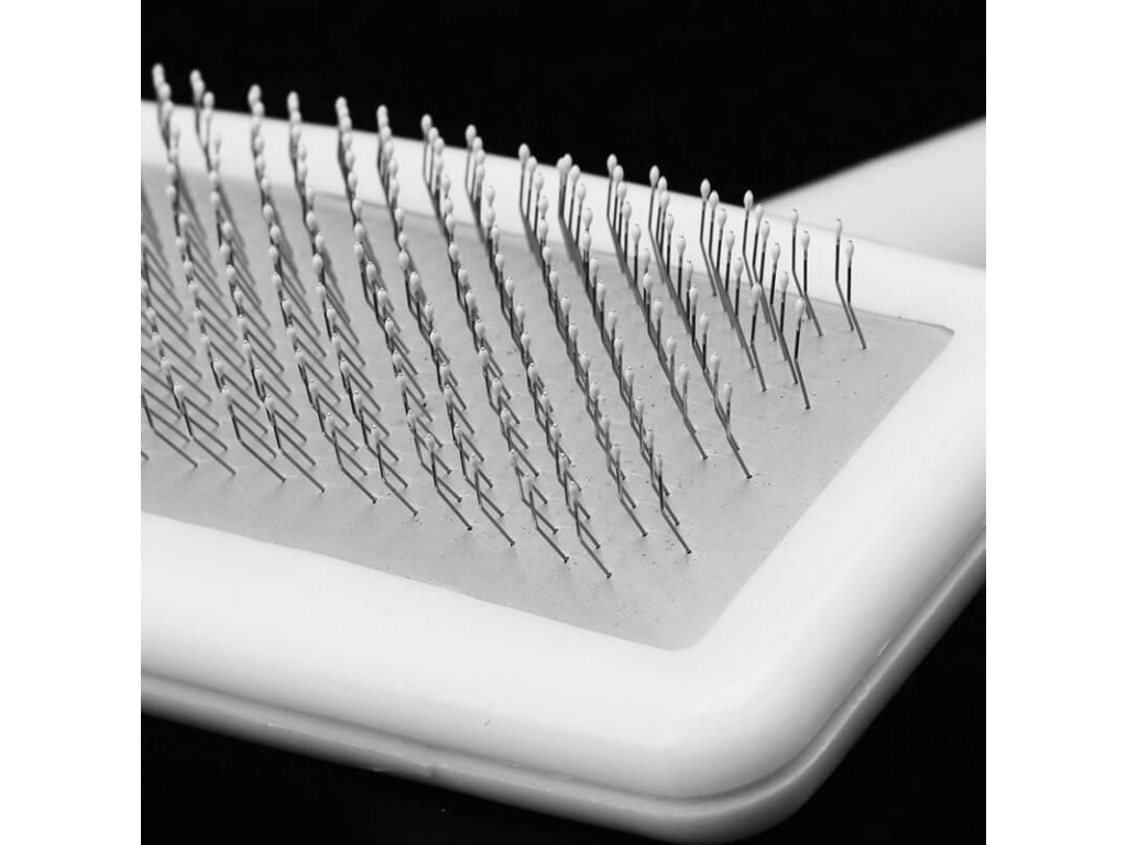Vyčesávací kartáč je vhodný pro pejsky s hustou srstí. Ocelové štětinky jsou zaoblené, tudíž při česání nedochází k poškrábání kůže.