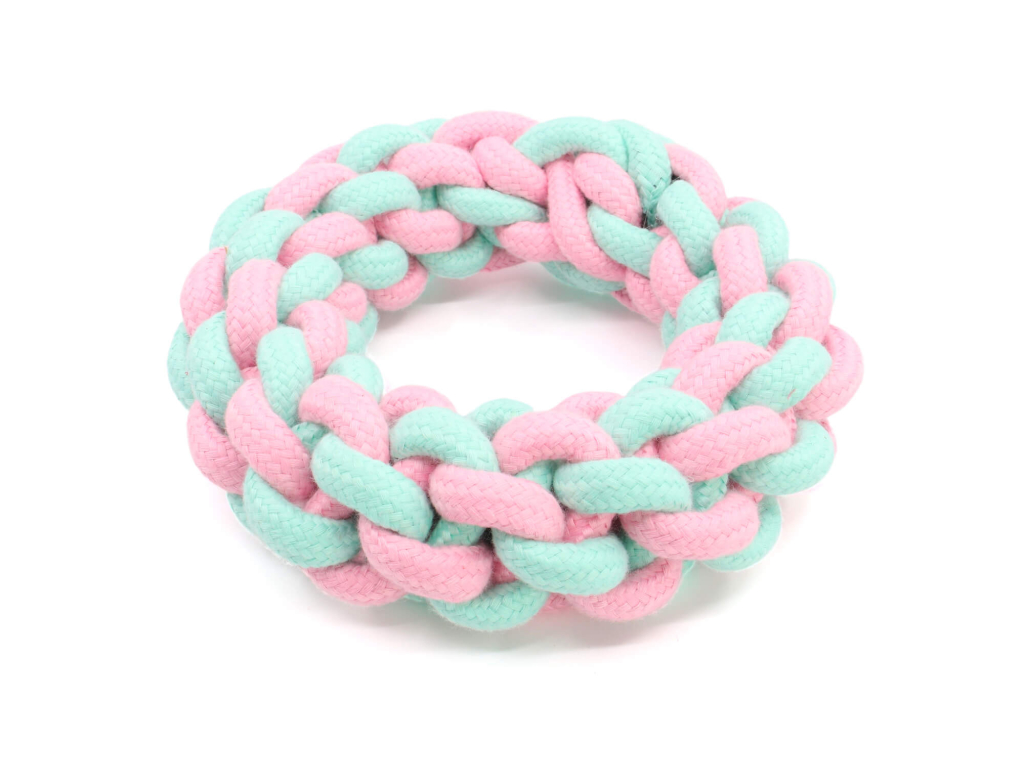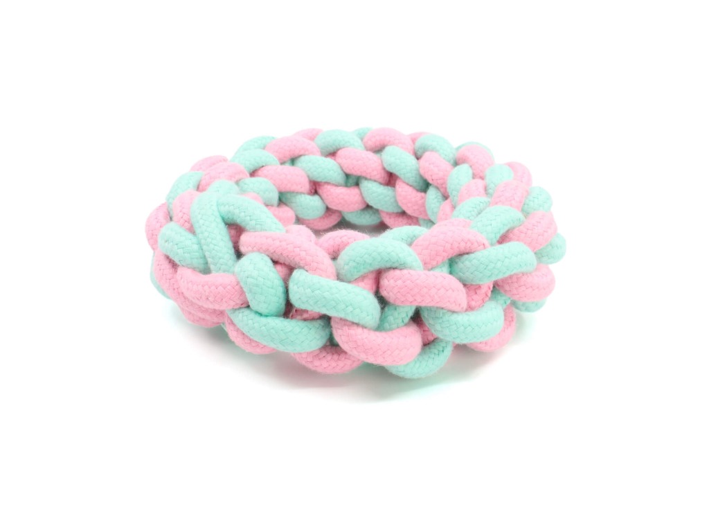 Hračka pro psa ve tvaru kruhu je ideální pomůckou k zabavení a vybití nadměrné psí energie. Díky své délce se skvěle hodí pro malá a střední psí plemena. Lze využít na společné i samostatné dovádění. Zapletená bavlna napomáhá k posilování žvýkacích svalů a dokáže jemně vyčistit zoubky od plaku. Oblíbíte si zejména její příjemnou strukturu.