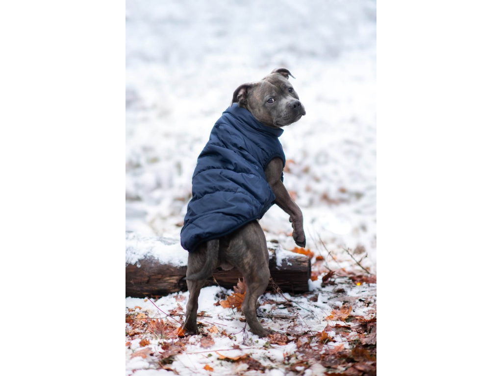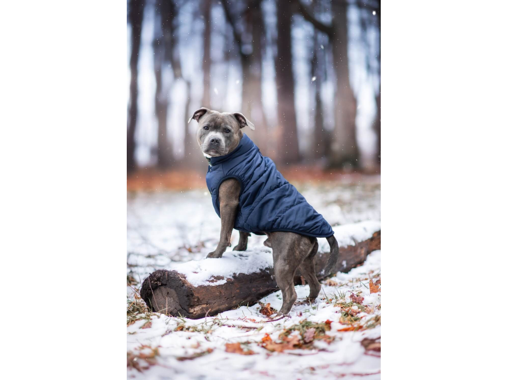 Navy zimní bunda pro psa s kožíškem