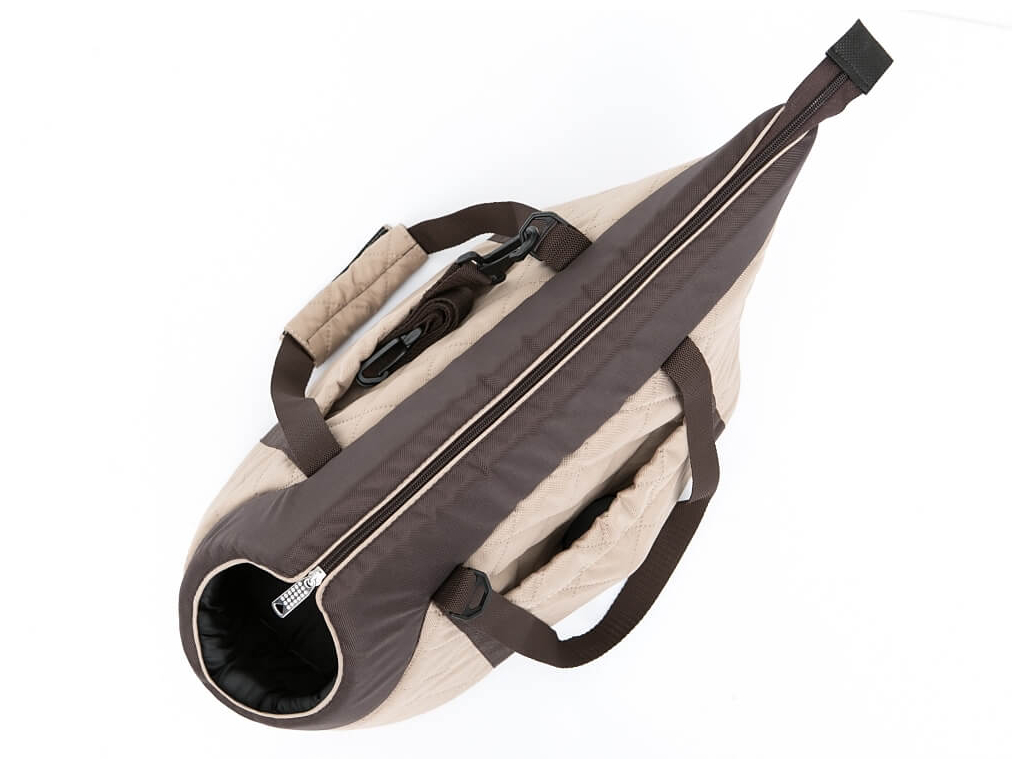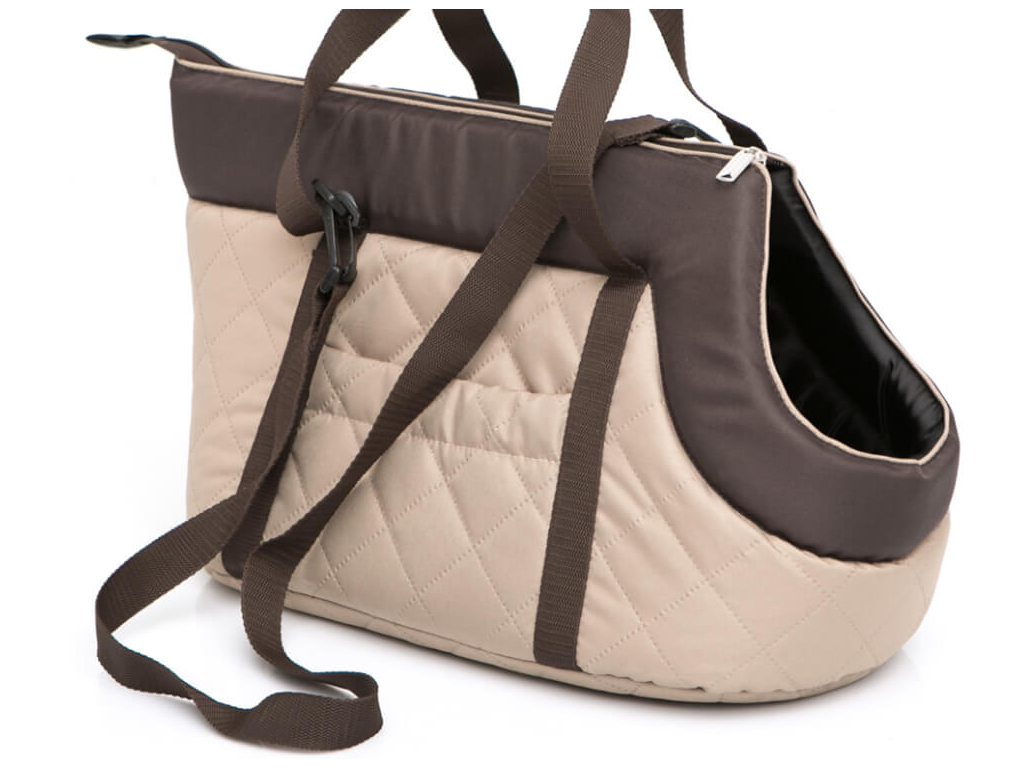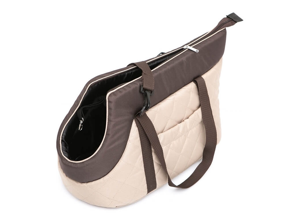 Vzhledem k nabízeným velikostním variantám potěší všechna psí plemena až do 7 kg. Vysoce kvalitní materiál je odolný, pevný a lehce omyvatelný. Špatné počasí není překážkou pro používání. Během nepříznivého počasí taška pro psy nepromokne. Polyesterový materiál můžete prát v pračce na 30 °C. Prošívaná béžovo-hnědá psí taška drží svůj tvar díky pevným bokům. Pro pohodlné nošení taška disponuje popruhem. Lze ji nosit přes rameno nebo v ruce. Mezi hlavní přednost tašky patří pohodlnost. Pejsek se uvnitř cítí komfortně a bezpečně. Bezpečnost je zajištěna pomocí háčku, ke kterému lze připnout vodítko. Kapsička na boční straně skvěle poslouží na pamlsky nebo jiné drobnosti.