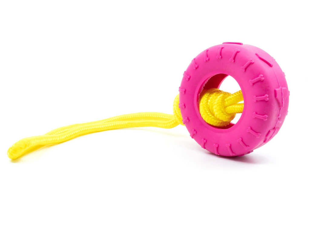 Přetahovadlo pro psy o délce 36 cm je velikostně vhodné pro malé a střední pejsky. Smyčka s pneumatikou o průměru 8 cm uzpůsobená ke dvou nejoblíbenějším psím činnostem - přetahování a aportování. Hraní se smyčkou přispívá k posílení žvýkacího svalstva mazlíčka. Opatřená poutkem pro snadnější a praktičtější úchop během hraní. Bavlna společně s plastem oplývá odolnými a příjemnými vlastnostmi. Dominantu tvoří plastová pneumatika dodávající nevšední vzhled.