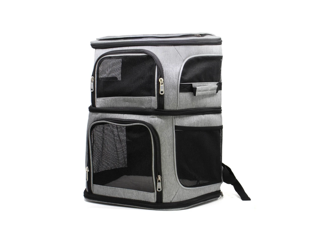 Unikátní design tohoto batohu umožňuje ubytování dvou psů v samostatných přihrádkách, což zajišťuje jejich pohodlí a bezpečnost. U batohu jde však patro sundat a můžete tak batoh využít pro jednoho většího psa. Kromě toho nabízí batoh boční kapsy na vodu a svačinu, takže máte vše potřebné pro celodenní výlet na dosah ruky.