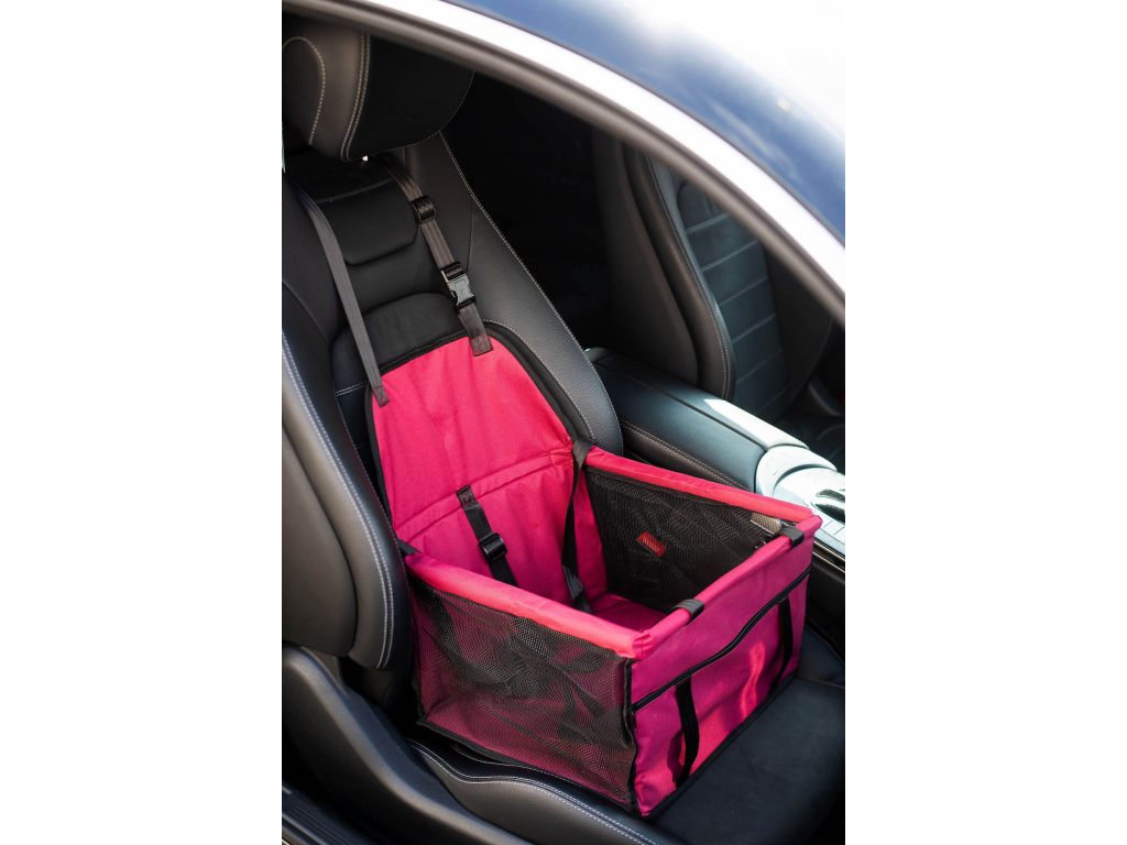 Vínová autosedačka usnadní přepravu malých psích plemen s váhou do 5 kg. Díky stabilnímu konstrukci hezky drží svůj tvar. Poskytne tak mazlíčkovi dostatek místa k uvelebení se během jízdy. Pohyb pejsků zajistíte připnutím vnitřního háčku na obojek. Výhoda psí autosedačky spočívá v možnosti efektivního zabezpečení na sedadlo. Disponuje nastavitelnými popruhy, které lze upevnit v horní i dolní části sedačky u spolujezdce (opěrka, zádová část). Do přední kapsičky můžete schovat menší drobnosti jako jsou například doklady nebo pamlsky. Boční strany autosedačky pokrývá síťová látka, jenž umožní psíkům výhled a dopřeje stálý přívod vzduchu. Polyester v kombinaci nylonu zaujme především snadnou údržbou. V případě ušpinění je možné autosedačku vyprat v pračce.