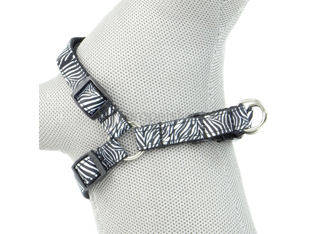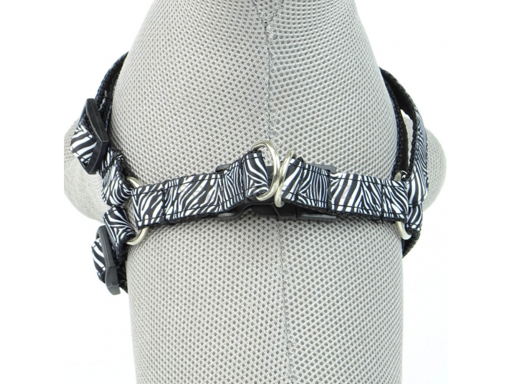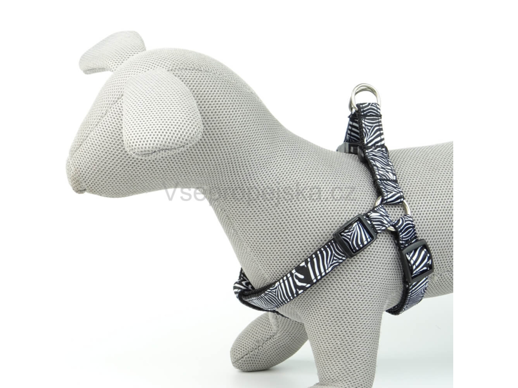 Postroj pro psa je vhodný pro malá a střední psí plemena, která rádi běhají a tahají. Tah je dokonale rozložen po celé délce páteře a pejsek se neškrtí a neničí si páteř. Na hřbetní straně se nachází očko pro připnutí vodítka. Postroj pro psa vyniká unikátním a luxusním designem a disponuje možností regulace velikosti.