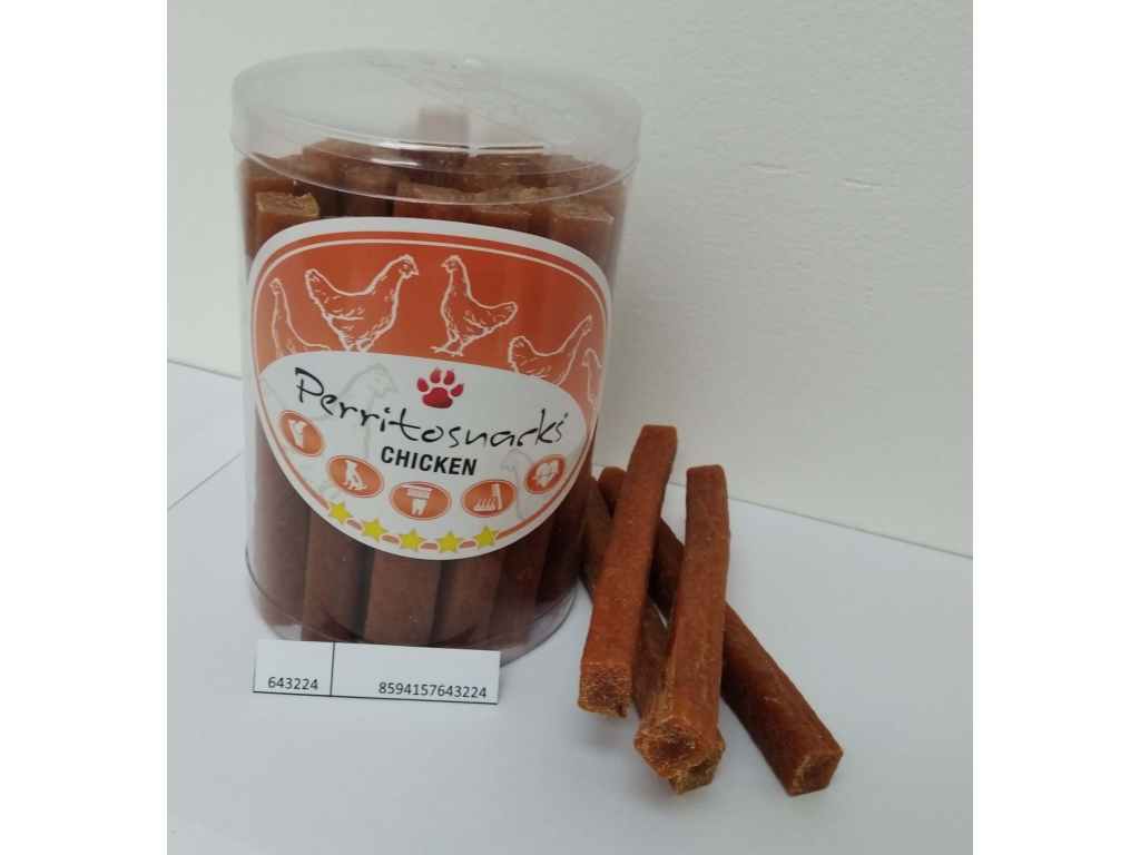 Kuřecí pamlsky ve tvaru tyčinek. Zdravé doplňkové krmivo pro psy a kočky, které obsahuje málo tuku a hodně bílkovin. 100 přírodní pamlsky sušené vzduchem. Napomáhají odstraňovat zubní plak a posilovat žvýkací svalstvo. Vhodné jako lahodná odměna. Po otevření spotřebujte do 7 dnů. Není určeno pro lidskou spotřebu. Vyrobené v České republice.