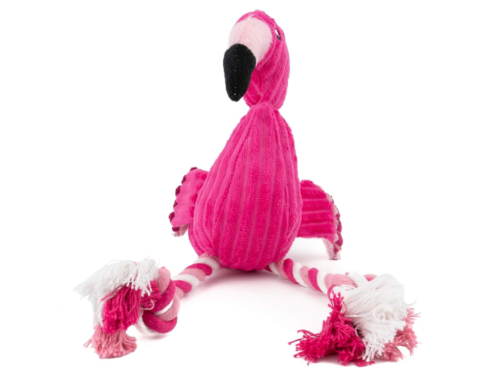 Plyšová hračka je určena pro každého pejska, který si rád hraje. Skvěle pejska zabaví v době naší nepřítomnosti a můžeme ji také využít pro výcvik. Plameňák při zmáčknutí píská. Pro větší legraci je hračka opatřena bavlněným lanem, do kterého může pejsek neúnavně hryzat.