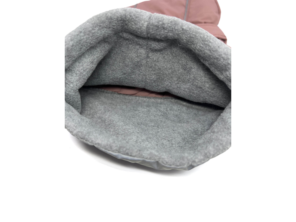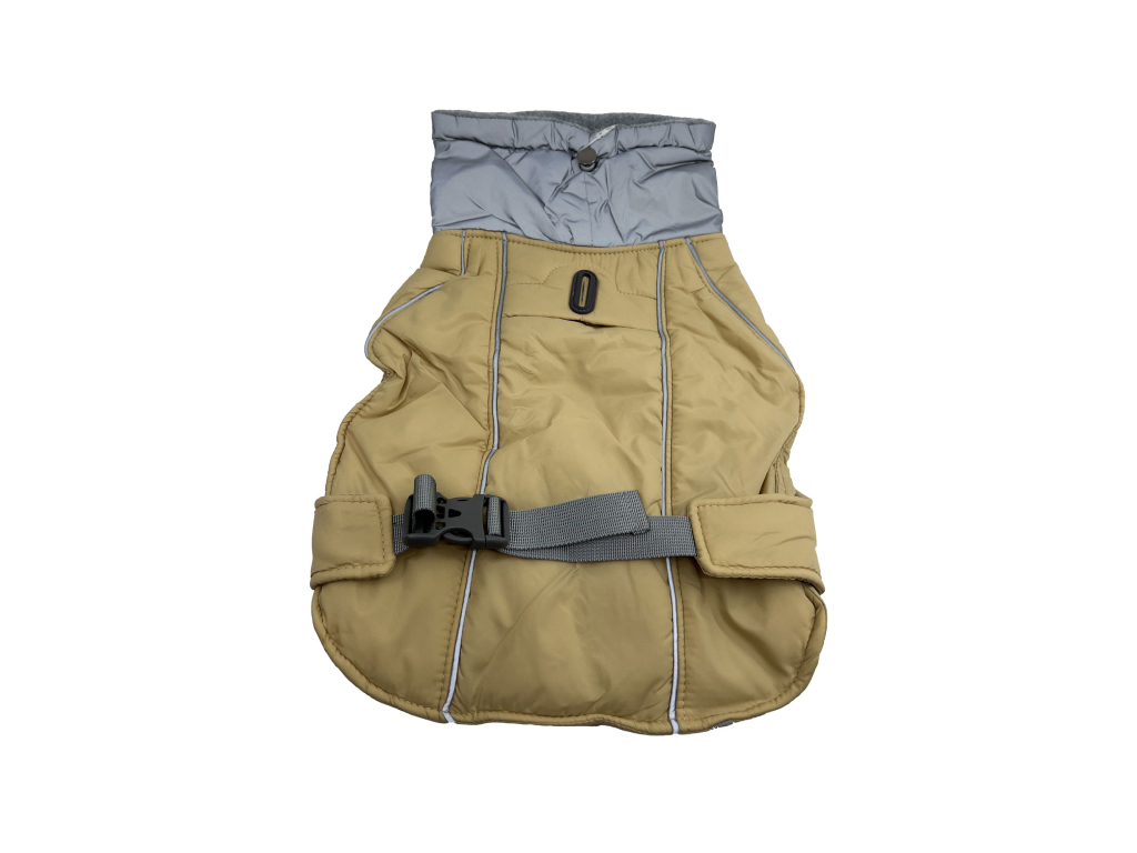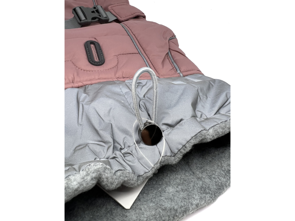 Zimní bunda s postrojem je podšitá fleecem. Nabízené velikosti padnou větším psím plemenům. Bunda je opatřena zapínáním na zip.