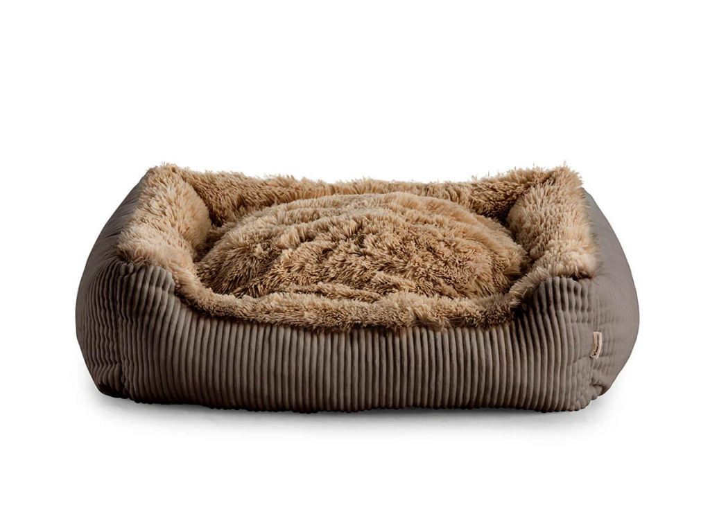 Zvenku odolná čalounická látka s jemným žebrováním. Vzhledem připomíná široký manšestr, ale je měkčí a příjemná na dotek. V kombinaci s vnitřní chlupatou výplní tvoří ideální pelíšek pro podzim a zimu.