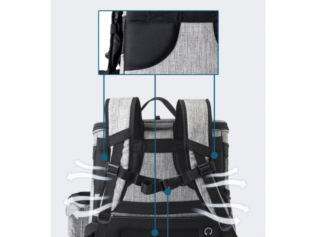 - Bezpečnostní prvky: Možnost připnutí psa uvnitř batohu a pevné dno pro stabilitu zajišťují bezpečnou přepravu vašeho mazlíčka.