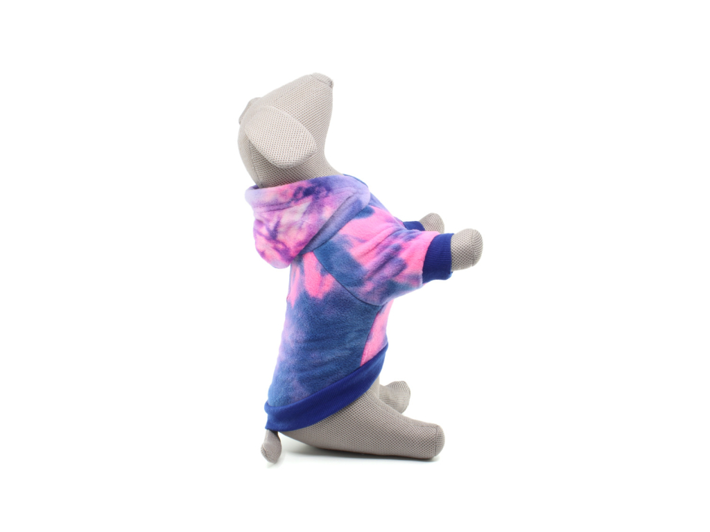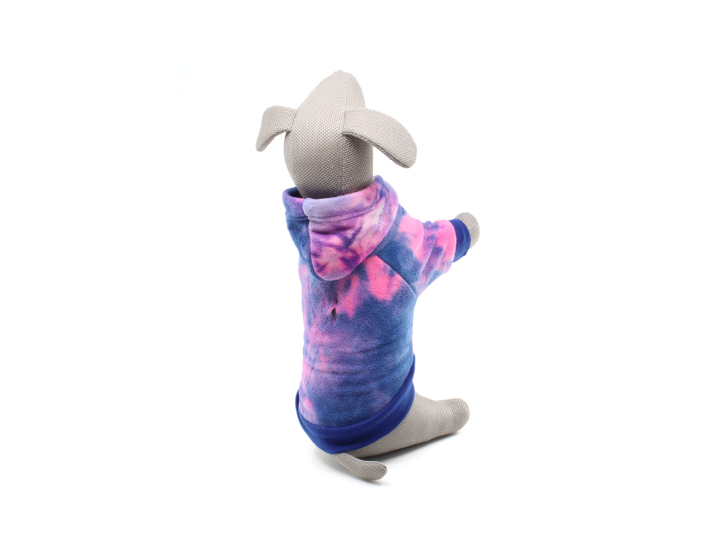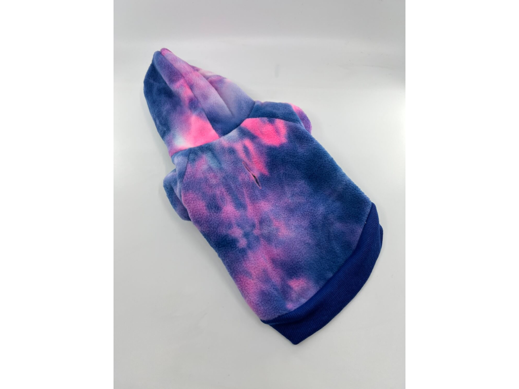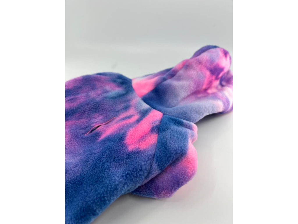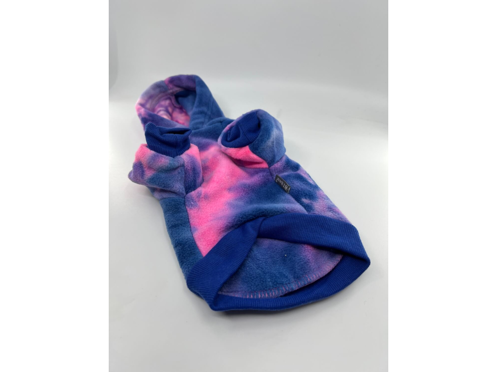 Splash batikovaná fleecová mikina pro psa – hebký fleece s kapucí, pružnými lemy a stylovým batikováním. Mikina se obléká přes hlavu, rychle zahřeje a neomezuje v pohybu.
