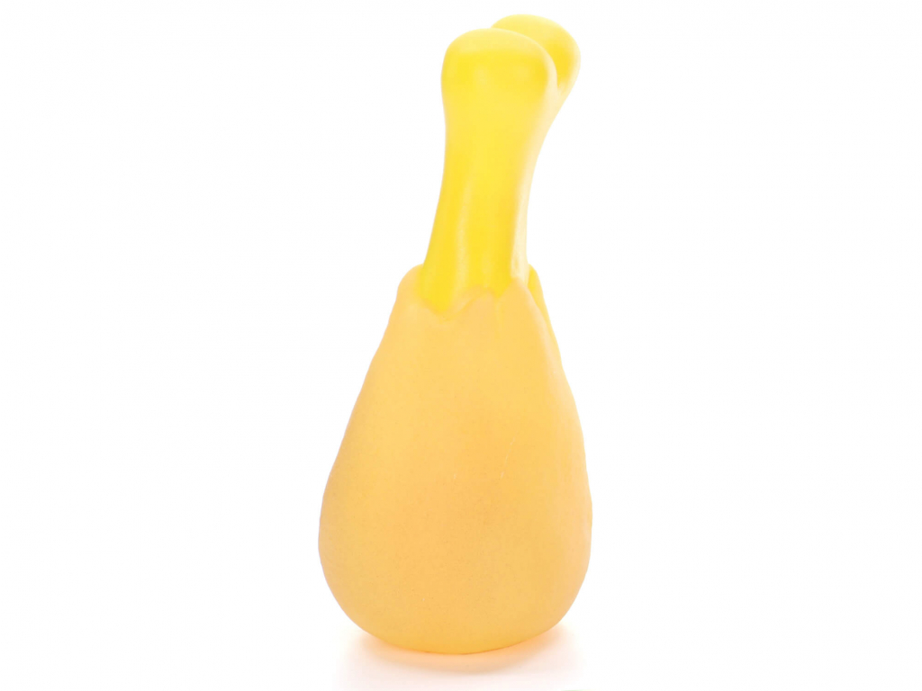 Gumová psí hračka ve tvaru stehna o délce 13 cm zabaví malé pejsky. Při zmáčknutí vydá pískací zvuk, jenž podnítí mazlíčka k další hře. Během dovádění tzv. okusováním a žužláním dochází k posilování žvýkacích svalů, čištění zoubků a masírování dásní psíků. Gumový materiál disponuje kvalitou a odolností.