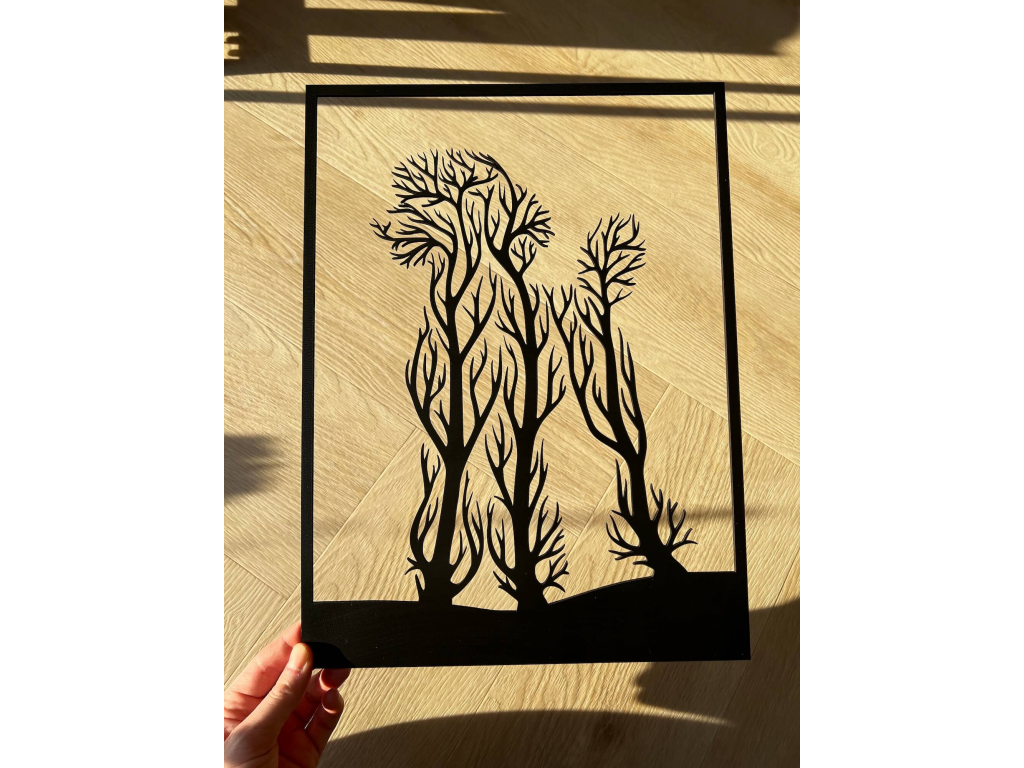 Dekorace do bytu je vyrobená z dřevovláknité desky.