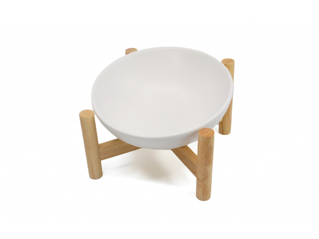 - Stabilita: Dřevěný podstavec zajišťuje, že miska zůstane pevně na místě během krmení.