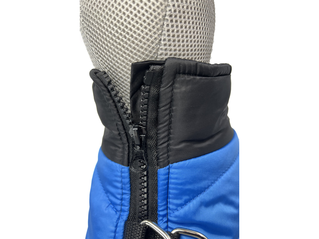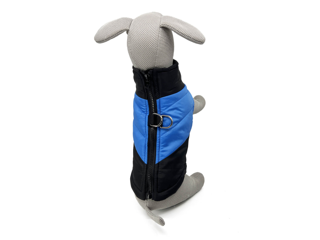 Zimní bunda s postrojem je podšitá fleecem. Nabízené velikosti padnou větším psím plemenům. Bunda je opatřena zapínáním na zip.