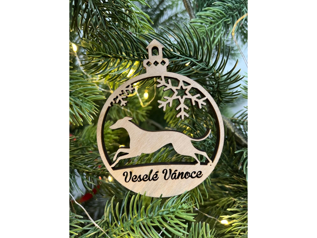 Vánoční baňka s chrtem – ozdoba na stromeček