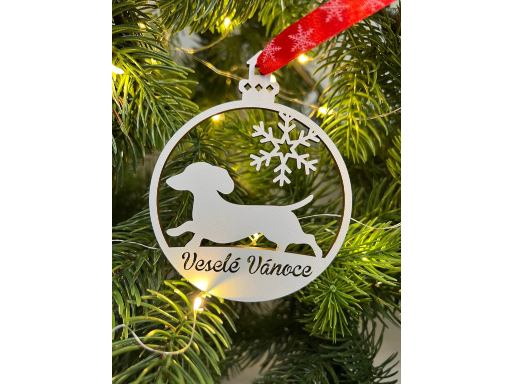 Vánoční baňka s jezevčíkem – ozdoba na stromeček