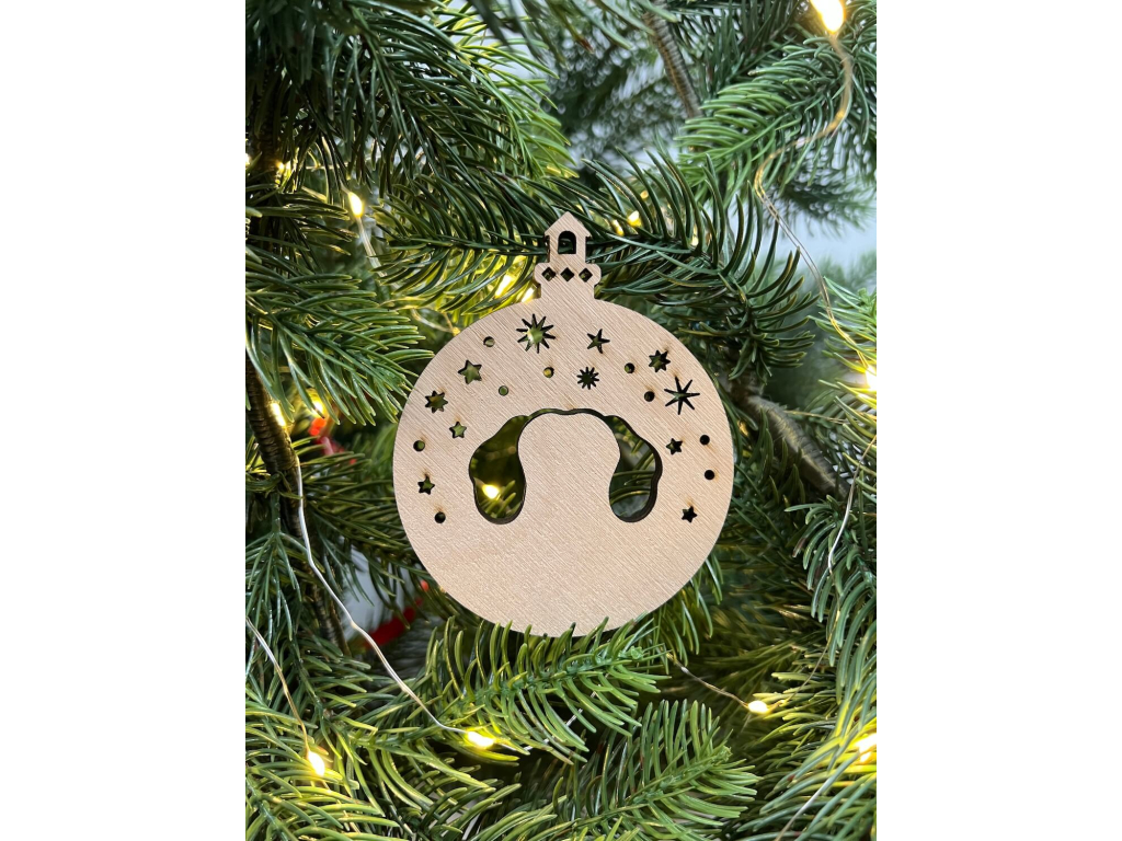 Naše dřevěná vánoční baňka je vyřezávána precizně pomocí laseru, díky čemuž vyniknou krásné detaily motivu. Jednoduchý, ale elegantní design se hodí jak na klasický vánoční stromek, tak jako stylová dekorace do interiéru. Každý kousek je vyráběn s láskou v Česku, takže získáváte nejen ozdobu, ale i kus poctivé ruční práce.