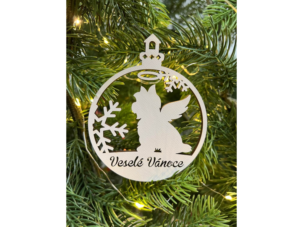 Vánoční baňka s jorkšírským teriérem – ozdoba na stromeček